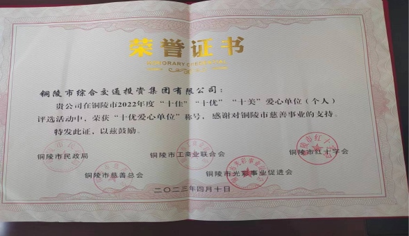 近日,2022年度市“十佳”“十優(yōu)”“十美”愛心單位評選出爐,集團(tuán)公司被授予“十優(yōu)愛心單位”榮譽(yù)稱號。