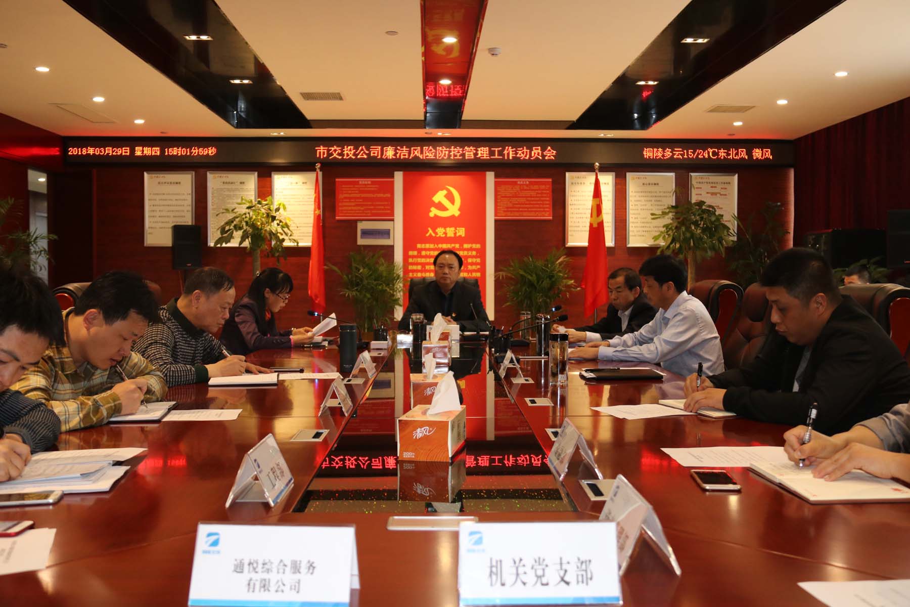 會上,黨工委委員、副總經(jīng)理范美霞宣讀《公司關(guān)于開展廉潔風(fēng)險防控管理工作的實施意見》,黨工委委員、副總經(jīng)理湯世才為全體參會人員講解“廉潔風(fēng)險知識”,最后,公司黨工委書記、董事長何成龍作動員講話。