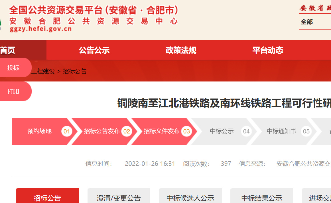 1月26日,工可招標文件在省交易中心順利掛網(wǎng)招標。銅陵南至江北港鐵路及南環(huán)線鐵路工程項目是銅陵市鐵路網(wǎng)的重要組成部分。該線路自銅陵南站接出,沿銅九鐵路東側(cè)向南敷設(shè),依次下穿銅九鐵路、寧安高鐵,沿京臺高速與民福家園之間北行,跨過既有京臺高速,經(jīng)G3銅陵長江公鐵大橋過江,西行至陳瑤湖鎮(zhèn),設(shè)銅陵江北站,后線路折向南,區(qū)間接軌于在建江北港鐵路專用線,引入江北港站,線路全長27.579km。南環(huán)線由銅陵南至江北港鐵路區(qū)間新建線路所接軌,后線路繼續(xù)北行,跨過濱江大道后接入海螺水泥廠專用線,新建線路長度2.958km。項目總估算是268531.12萬元。