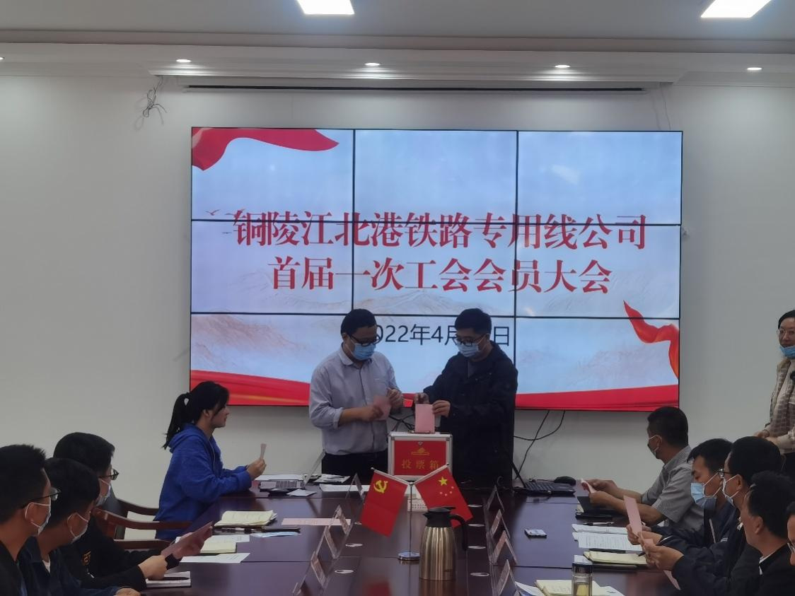4月19日下午,銅陵江北港鐵路專用線有限責(zé)任公司首屆一次會(huì)員大會(huì)隆重召開,標(biāo)志著銅陵江北港鐵路專用線有限責(zé)任公司工會(huì)正式成立。