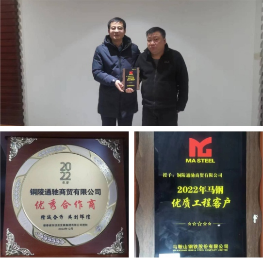 2023年2月10日,通馳商貿(mào)公司憑借精質(zhì)的服務在眾多供應商中脫穎而出,榮獲馬鋼公司2022年度“優(yōu)質(zhì)工程客戶”稱號。馬鋼公司營銷中心市場分析師、首席營銷師夏仕卿特赴公司現(xiàn)場授牌并調(diào)研相關工作。