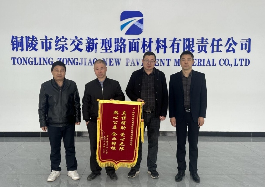 3月16日上午,收到愛心捐款的橫埠鎮(zhèn)左山小學校長在橫埠園區(qū)管委會負責人的陪同下,將一面寫著“真情捐助 愛心無限 熱心公益 企業(yè)楷模 ”的錦旗送到綜交新型路面材料公司,對我公司的愛心公益事業(yè)行為表示衷心感謝。