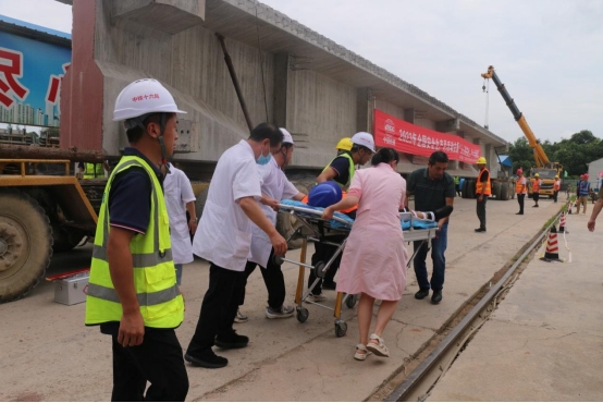 本次演練采取現(xiàn)場實戰(zhàn)演練方式。充分模擬在梁體運(yùn)輸過程中,由于駕駛員操作失誤導(dǎo)致運(yùn)梁車側(cè)翻傾覆,人員緊急跳車受傷,梁體受損并存在安全隱患,需要立即啟動應(yīng)急響應(yīng)程序的場景。
