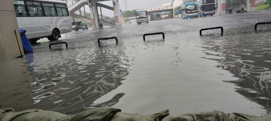 7月25日中午,我市發(fā)生大風(fēng)降雨等降對(duì)流天氣。由于雨勢(shì)迅猛,汽車(chē)站站場(chǎng)內(nèi)發(fā)生大面積積水,并漫溢到候車(chē)廳外檢票通道,水勢(shì)沖擊著防汛沙包直逼候車(chē)大廳。面對(duì)這一情況,工作人員迅速啟動(dòng)防汛應(yīng)急預(yù)案,立即對(duì)沙包進(jìn)行加固處理,關(guān)閉停用一切非必要生產(chǎn)用電,安排人員對(duì)候車(chē)旅客統(tǒng)一集中管理,隨時(shí)組織疏散。