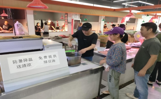 同時,針對近期連續(xù)出現(xiàn)的高溫天氣,世界花園農(nóng)貿(mào)市場為營造良好的市場氛圍,切實讓商戶和消費者從經(jīng)營和購物中感受到市場管理方的關(guān)愛,自8月1日起,世界花園農(nóng)貿(mào)市場開展“夏日送清涼,消暑綠豆湯”活動,為廣大商戶和消費者送去一份“清涼”。此次活動的開展,不僅受到廣大商戶和消費者的稱贊,還受到上級主管部門的表揚,推動了分公司服務(wù)水平再上新臺階。