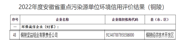10月9日,市生態(tài)環(huán)境局對2022年度“安徽省重點(diǎn)污染源單位環(huán)境信用等級評價結(jié)果”予以公布,市交投集團(tuán)司屬堅益鋁業(yè)公司經(jīng)過層層評選,成功榮獲“環(huán)保誠信企業(yè)”稱號。據(jù)悉獲評該項榮譽(yù)我市共計92家企業(yè)。