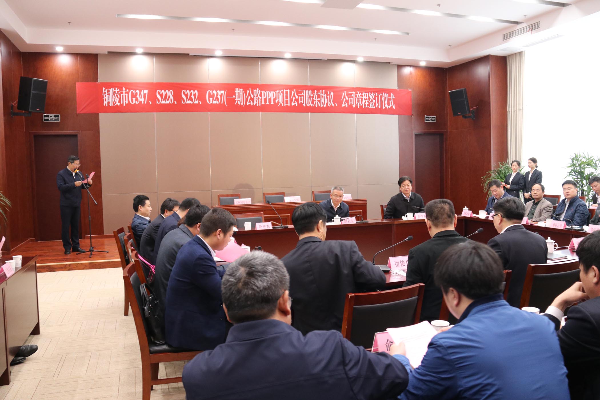 3月28日上午,我市國道347、省道228、省道232、國道237(一期)公路PPP項(xiàng)目公司股東協(xié)議及公司章程簽訂儀式在市綜合交通投資集團(tuán)有限公司舉行。市委副書記、市長胡啟生,中交第三公路工程局有限公司黨委書記、董事長黃臘泉,蘇州國發(fā)集團(tuán)總裁翟俊生,副市長黃學(xué)龍等現(xiàn)場見證。黃臘泉、翟俊生,市交投集團(tuán)董事長何成龍簽訂四條公路PPP項(xiàng)目公司股東協(xié)議及公司章程。
