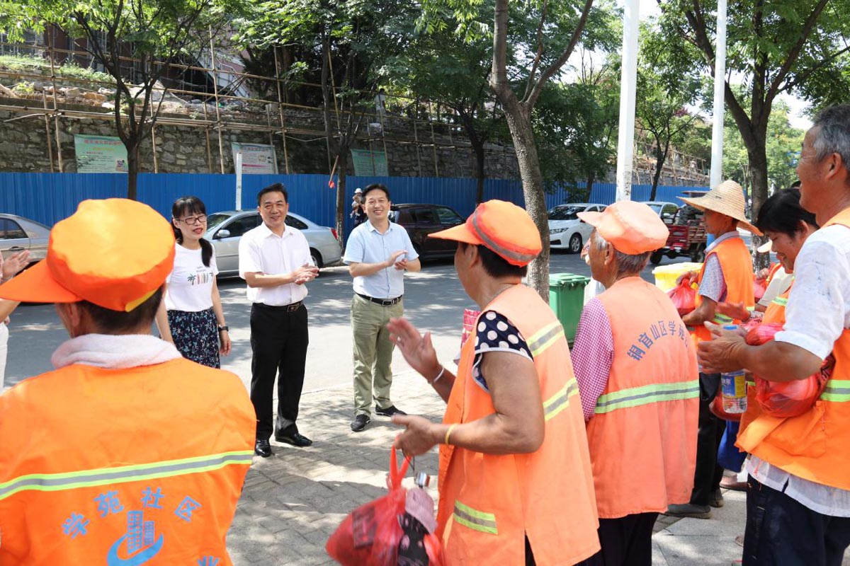 8月7日上午,集團公司黨工委委員、副總經(jīng)理范美霞率隊前往銅官區(qū)學苑社區(qū)看望慰問環(huán)衛(wèi)工人,開展“三包兩保”創(chuàng)建督導工作。