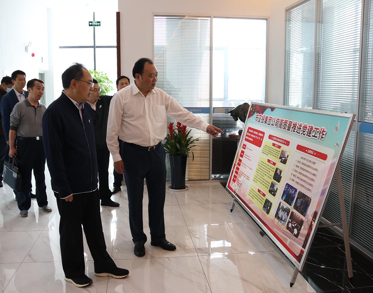 趙振華一行先后查看了公司重點(diǎn)項(xiàng)目建設(shè)宣傳欄、廊道文化及黨務(wù)宣傳欄等內(nèi)容,聽取了集團(tuán)公司黨工委書記、董事長(zhǎng)何成龍關(guān)于黨建工作的情況匯報(bào)。