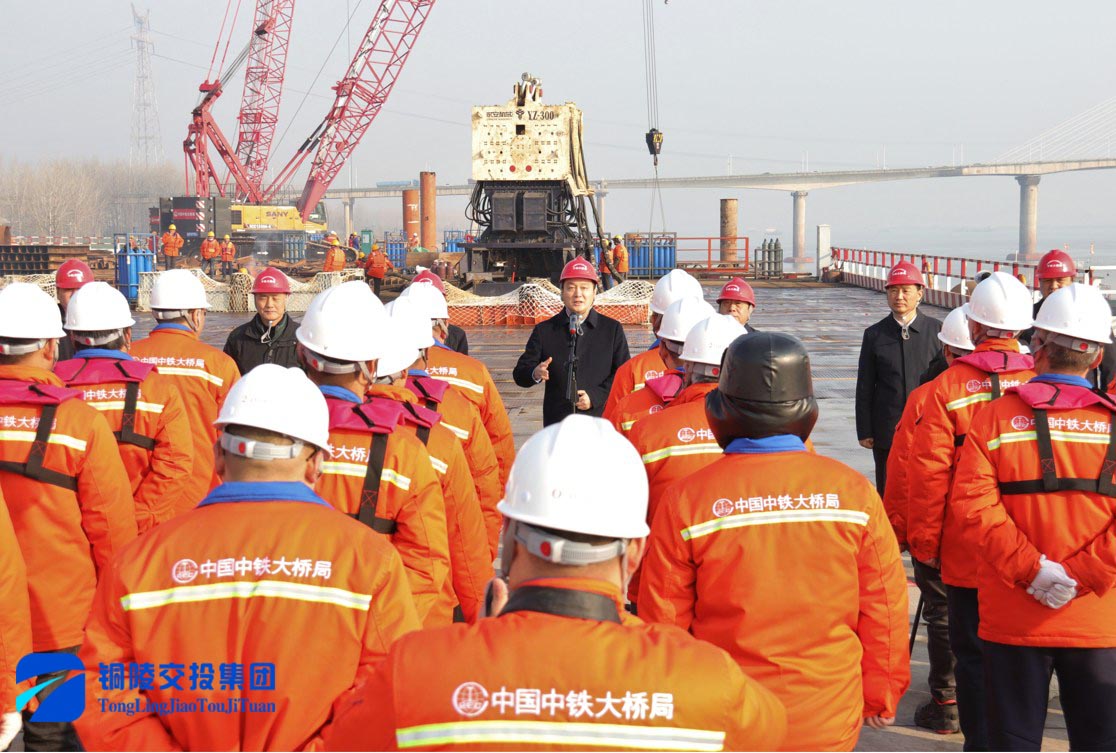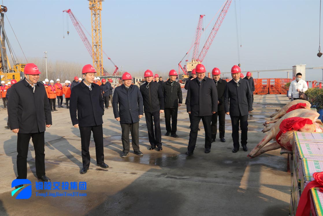 12月29日上午,市委副書記、市長(zhǎng)孔濤調(diào)研G3銅陵長(zhǎng)江公鐵大橋項(xiàng)目建設(shè)工作并看望慰問(wèn)一線職工。市領(lǐng)導(dǎo)張夢(mèng)生、金春龍、何田、何剛明、黃學(xué)龍,市政府秘書長(zhǎng)古勁松等參加,集團(tuán)公司黨委書記、董事長(zhǎng)何成龍參加調(diào)研。