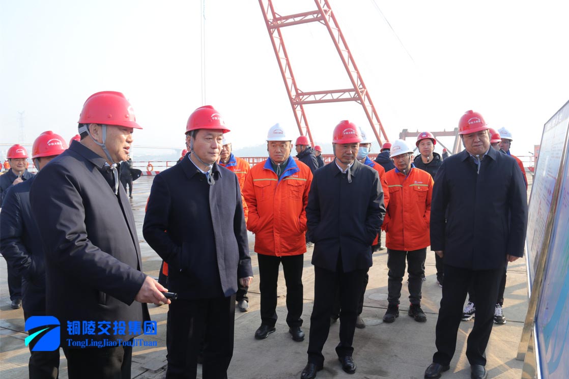 孔濤一行深入G3銅陵長(zhǎng)江公鐵大橋項(xiàng)目現(xiàn)場(chǎng),聽(tīng)取施工單位項(xiàng)目安全生產(chǎn)和建設(shè)情況匯報(bào)。
