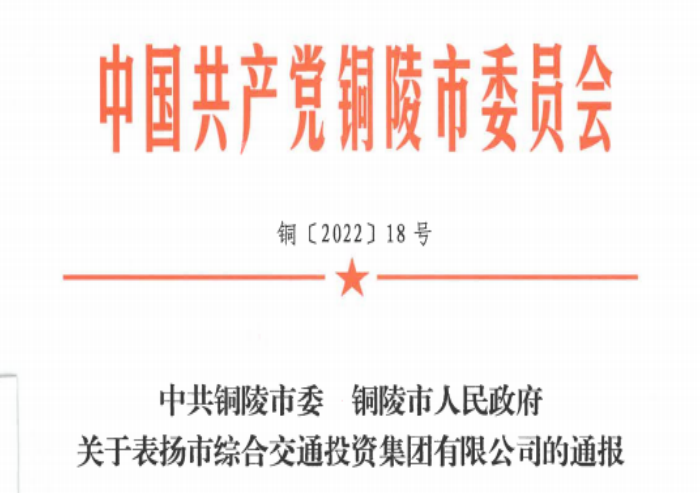 中共銅陵市委 銅陵市人民政府關(guān)于表揚(yáng) 市綜合交通投資集團(tuán)有限公司的通報