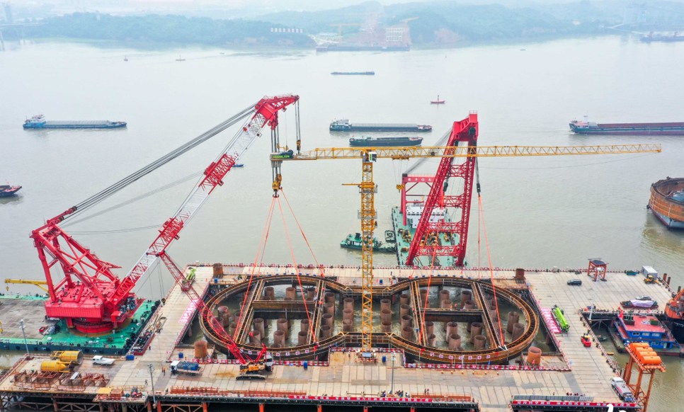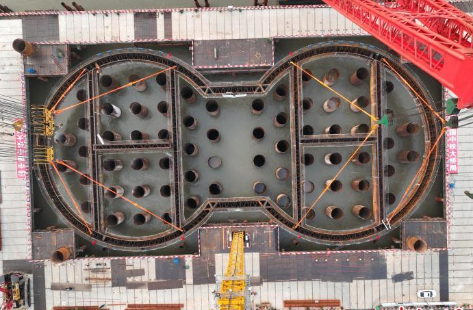5月30日下午,隨著世界最大的圓啞鈴型鋼圍堰第一節(jié)、第二節(jié)準(zhǔn)確吊裝就位,標(biāo)志著由市交投集團(tuán)投資建設(shè)、中國中鐵大橋局承建的世界首座雙層斜拉-懸索協(xié)作體系大橋——G3銅陵長江公鐵大橋3號主塔墩正式轉(zhuǎn)入大體積承臺施工階段,大橋建設(shè)取得重大進(jìn)展。