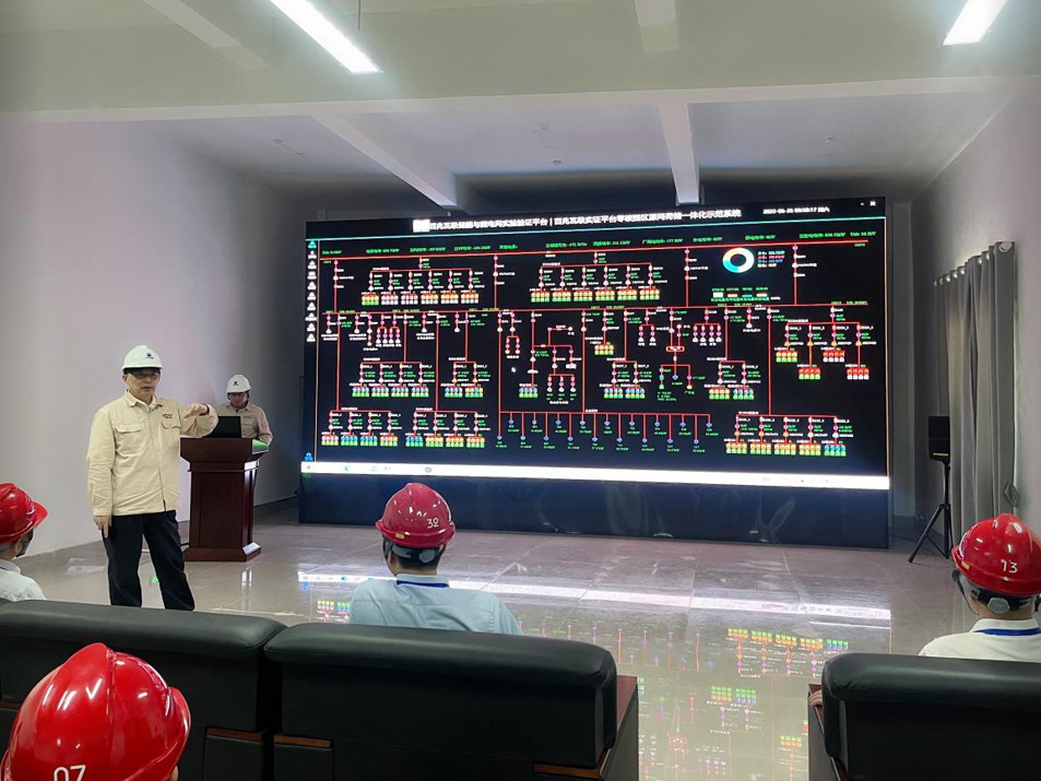 在富能寶能源科技有限公司,周文勝同志一行詳細(xì)了解了企業(yè)規(guī)模、發(fā)展現(xiàn)狀、技術(shù)優(yōu)勢(shì)、科研轉(zhuǎn)化成果等,現(xiàn)場(chǎng)調(diào)研了百兆瓦級(jí)儲(chǔ)能與微電網(wǎng)試驗(yàn)驗(yàn)證平臺(tái)及零碳園區(qū)源網(wǎng)荷儲(chǔ)一體化示范系統(tǒng),并與該公司高管開展了座談交流。