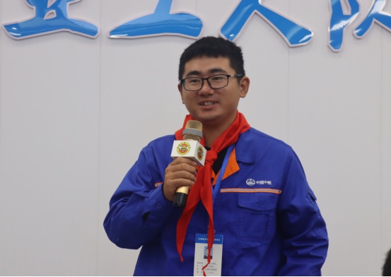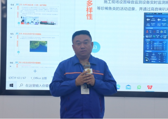 參觀結(jié)束后,小記者們來(lái)到展演廳,一起觀看G3橋建設(shè)宣傳片、聆聽(tīng)G3橋安全總監(jiān)周啟輝講解生物多樣性相關(guān)知識(shí)以及G3橋建設(shè)期間對(duì)生物多樣性保護(hù)的措施。一張張?zhí)匦Ю瓭M的動(dòng)態(tài)效果圖,一幀幀凝聚著建筑工人汗水的畫(huà)面,給小記者們留下了深刻的印象。小記者代表們?yōu)榻ㄔO(shè)者們戴上鮮紅的紅領(lǐng)巾,表達(dá)對(duì)他們的崇敬之情。