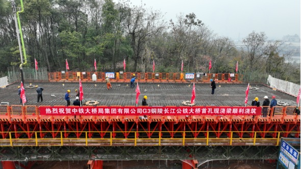 經(jīng)過持續(xù)10個小時的連續(xù)奮戰(zhàn),12月8日晚22點(diǎn),G3銅陵長江公鐵大橋首孔現(xiàn)澆梁混凝土澆筑全部完成,標(biāo)志著大橋南引橋正式進(jìn)入了上部主體結(jié)構(gòu)施工階段。