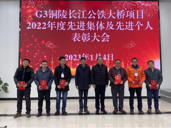 會(huì)上,項(xiàng)目部匯報(bào)了2022年度施工總結(jié)及2023年施工計(jì)劃,項(xiàng)目辦匯報(bào)了2022年度管理工作情況及下一步工作重點(diǎn),最后,銅陵長(zhǎng)江公鐵大橋投資公司宣讀2022年度先進(jìn)集體及工作者表彰決定并頒獎(jiǎng)。