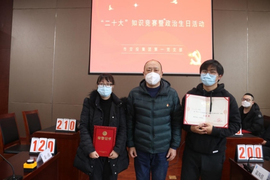 2023年1月12日上午,集團(tuán)公司第一黨支部舉辦“黨的二十大”知識(shí)競(jìng)賽和“政治生日”活動(dòng)。集團(tuán)公司黨委書記、董事長(zhǎng)何成龍、黨委副書記方勁松、黨委委員、紀(jì)委書記章新華均以普通黨員身份參加。