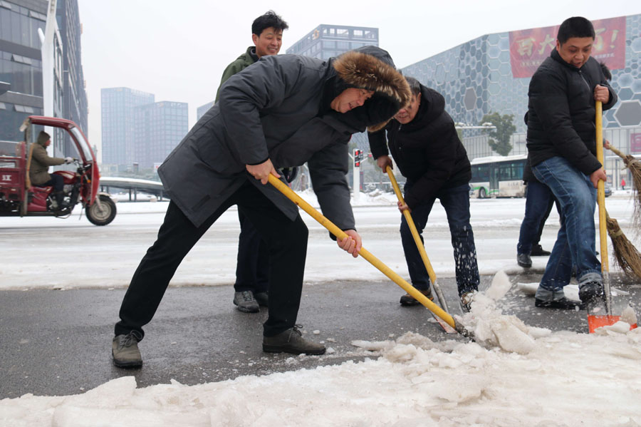 2018年1月28日, 連續(xù)3天的暴雪之后,銅陵城市道路上已覆蓋了厚厚的積雪,多數(shù)路段的積雪已經(jīng)凝結(jié)成冰。為了保障市民的出行安全,貢獻(xiàn)交投公司的一份力量。當(dāng)日下午,市交投公司黨工委領(lǐng)導(dǎo)帶領(lǐng)全體員工進(jìn)行了義務(wù)除雪活動(dòng)。