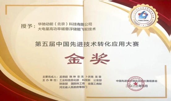 2023年4月6日,我司銅交投海貝科創(chuàng)股權基金所投華馳動能項目,在河北省保定市舉辦的第五屆中國先進技術轉化應用大賽(以下簡稱本屆大賽)中,以“大電量高功率磁懸浮儲能飛輪技術”,成功斬獲新能源與節(jié)能降碳技術產業(yè)化類金獎。該項目經歷三個月激烈角逐,從 1100個參賽項目中脫穎而出,最終在本屆大賽十五個金獎中斬獲一金。