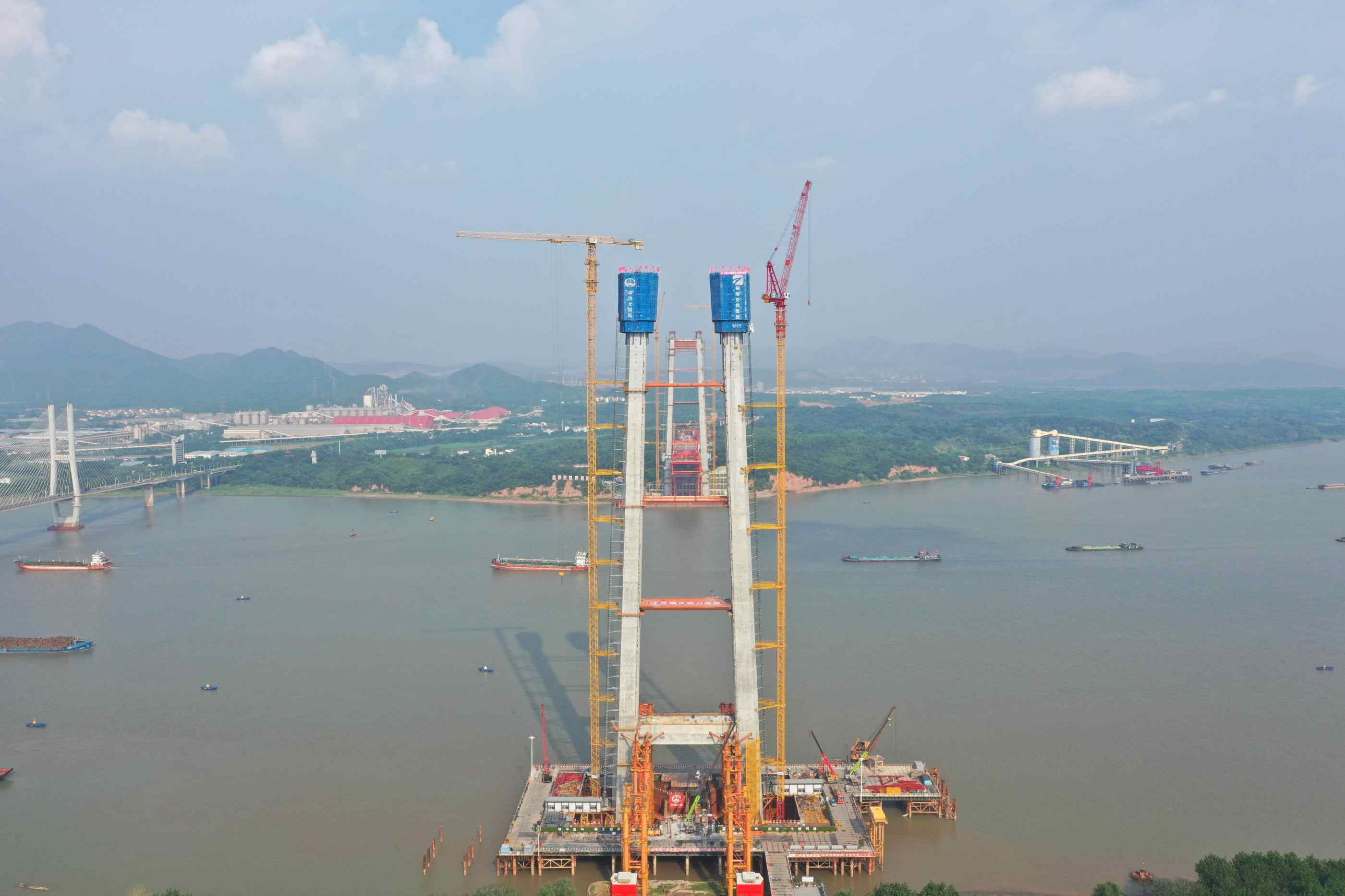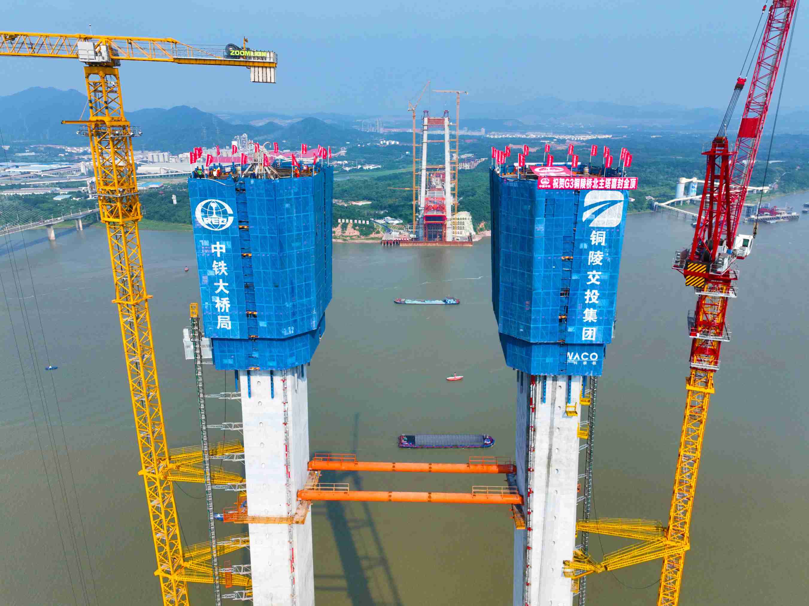 8月18日,由銅陵市交投集團(tuán)投資建設(shè)、中鐵大橋院設(shè)計(jì)、中鐵大橋局承建的世界首座雙層斜拉-懸索協(xié)作體系大橋——G3銅陵長江公鐵大橋北岸3號(hào)主塔順利封頂,至此,大橋南北兩座主塔全部封頂,施工取得重大進(jìn)展,大橋?qū)⑷孢M(jìn)入鋼梁架設(shè)階段。