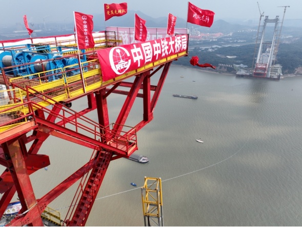 10月20日11時18分,由市交投集團投資建設(shè)、中鐵大橋院設(shè)計、中鐵大橋局承建的G3銅陵長江公鐵大橋先導(dǎo)索順利過江,大橋南北主塔成功空中“牽手”,標(biāo)志著世界首座雙層斜拉-懸索協(xié)作體系大橋全面轉(zhuǎn)入上部結(jié)構(gòu)貓道施工階段。