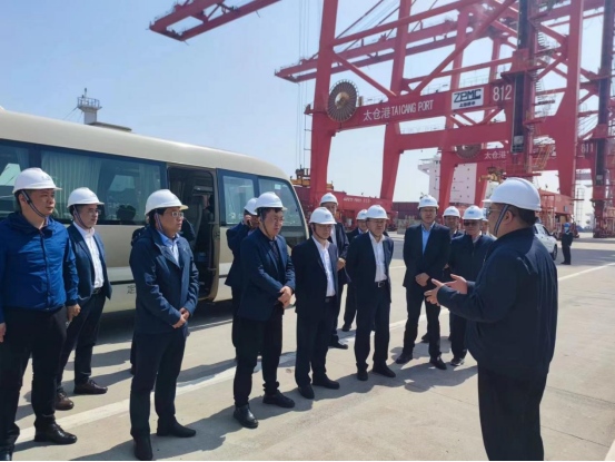 在太倉港港務(wù)集團(tuán),先后參觀了裝箱碼頭和鑫海碼頭,詳細(xì)了解港口貨物種類、貨源流向、港區(qū)后方產(chǎn)業(yè)等情況。