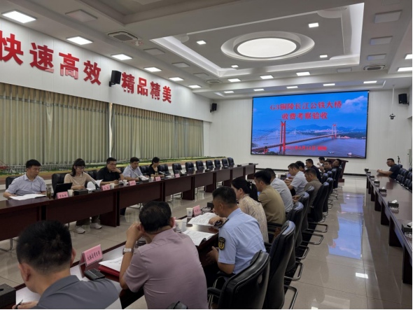 考察組一行首先實地查看了收費站現(xiàn)場情況,對項目收費系統(tǒng)的建設成果給予高度評價。在隨后召開的驗收會議上,與會人員觀看了項目建設紀實視頻,聽取了市交通運輸局關于收費申報驗收工作的專題匯報。經充分討論,考察組一致認為G3銅陵長江公鐵大橋項目已具備設站收費條件,同意辦理收費申報手續(xù)。