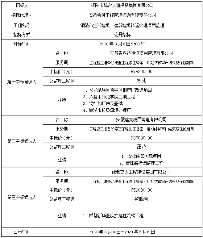 注:如有投訴或情況反映,請(qǐng)于公示期間與銅陵市綜合交通投資集團(tuán)有限公司聯(lián)系。