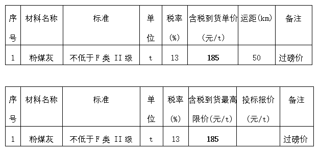 ? 1、“銅陵通馳商貿(mào)有限公司粉煤灰供應(yīng)商”(項目編號:TCG22061)招標(biāo)文件中招標(biāo)最高限價表、投標(biāo)報價表分別修改后如下: