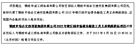 2.項(xiàng)目名稱(chēng):銅陵市綜合交通投資集團(tuán)有限公司2022年銀行間市場(chǎng)債務(wù)融資工具主承銷(xiāo)商招標(biāo)項(xiàng)目