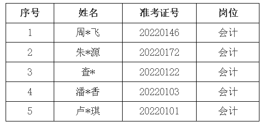 根據(jù)2022年7月25日發(fā)布的《銅陵市綜合交通投資集團(tuán)有限公司公開(kāi)招聘人員公告》規(guī)定,現(xiàn)將銅陵交投集團(tuán)2022年公開(kāi)招聘的會(huì)計(jì)崗位擬錄用人員予以公示,名單如下: