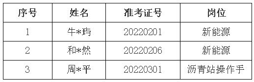 根據(jù)2022年7月25日發(fā)布的《銅陵市綜合交通投資集團(tuán)有限公司公開(kāi)招聘人員公告》規(guī)定,現(xiàn)將銅陵交投集團(tuán)2022年公開(kāi)招聘的新能源及瀝青站操作手崗位擬錄用人員予以公示,名單如下: