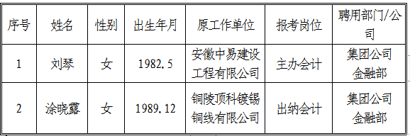 根據(jù)《銅陵市交通投資有限責(zé)任公司招聘人員公告》,現(xiàn)將出納會計、主辦會計擬聘用人員名單公示如下:
