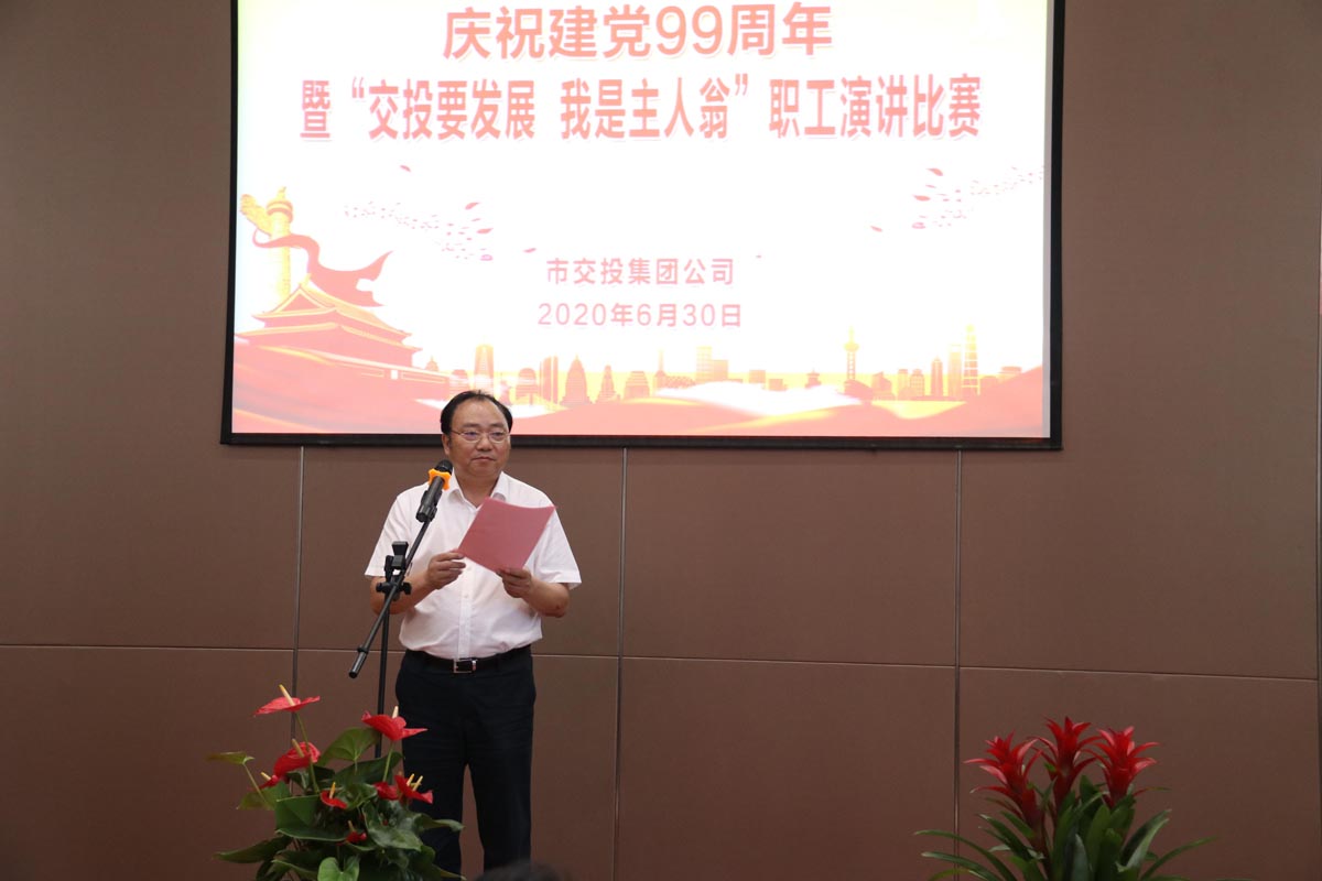 為熱烈慶祝中國共產(chǎn)黨成立99周年,在公司上下進一步樹牢“發(fā)展為要、項目為王、實干為先”鮮明干事創(chuàng)業(yè)導(dǎo)向,積極展現(xiàn)集團公司職工團結(jié)拼搏、昂揚向上的精神風(fēng)貌。6月30日下午,集團公司舉行慶祝建黨99周年暨“交投要發(fā)展、我是主人翁”職工演講比賽。市委組織部副部長、市委非公有制經(jīng)濟和社會組織工作委員會書記孫彬,市委宣傳部常務(wù)副部長張文林,市國資委主任、黨委書記丁灝,市總工會黨組書記、副主席劉亞平等應(yīng)邀出席活動,集團公司黨工委班子成員、中層以上管理人員及部分職工代表觀看比賽。