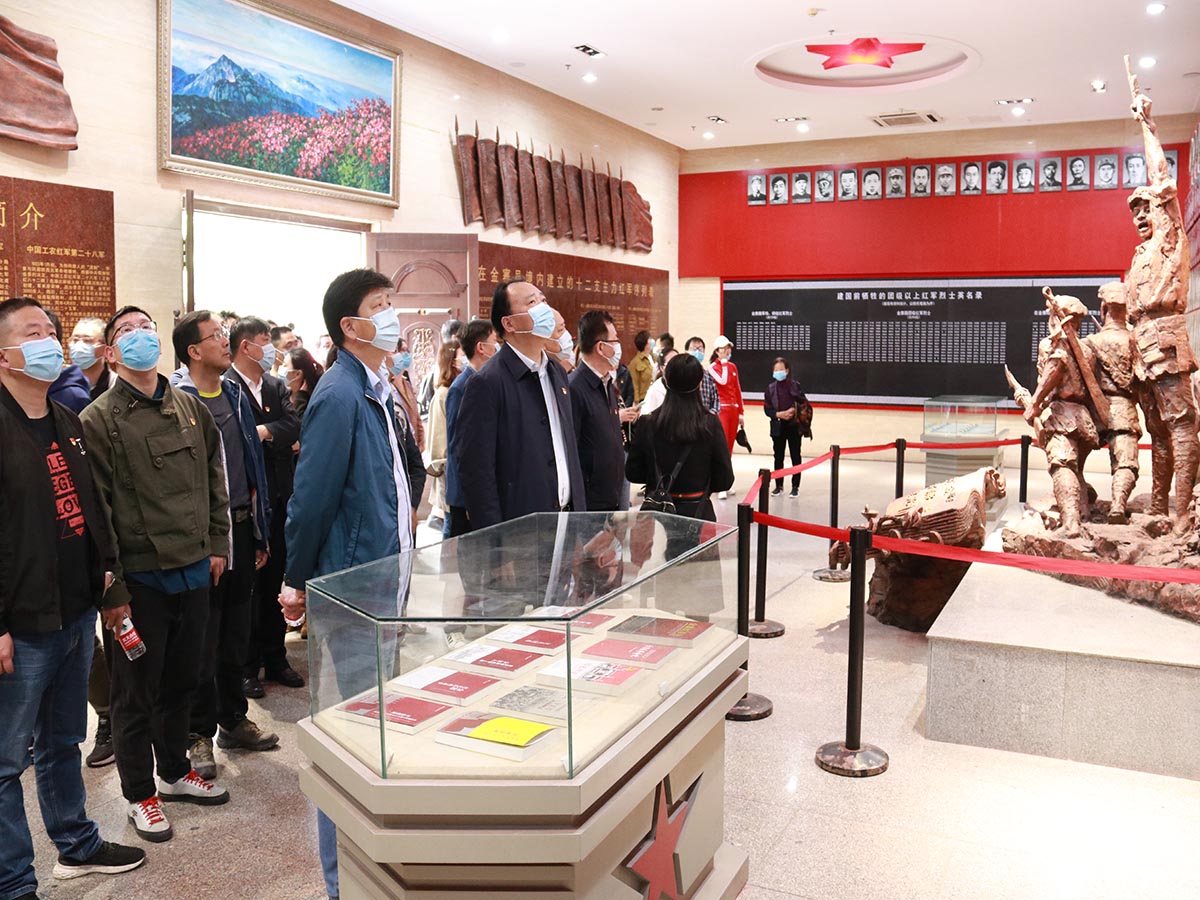 大家依次瞻仰了紅軍紀(jì)念堂、洪學(xué)智將軍紀(jì)念碑、革命烈士墓園,并參觀了革命博物館。同志們認(rèn)真觀看每一張歷史圖片,每一段文字資料,每一件珍貴物品,仿佛置身于那個烽火燎原的革命年代,看到了當(dāng)年紅軍指戰(zhàn)員浴血奮戰(zhàn)、追求真理的畫面,親身體驗(yàn)到革命先烈們?yōu)閷で笳胬矶幌侇^顱、灑熱血的英雄壯舉,心潮澎湃,深受鼓舞。