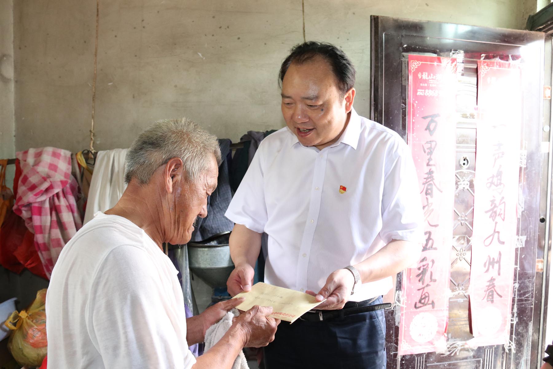 6月15日上午,市交投公司組織黨員干部前往樅陽縣老洲鎮(zhèn)沙池村,開展節(jié)前慰問貧困戶及主題黨日活動(dòng)。