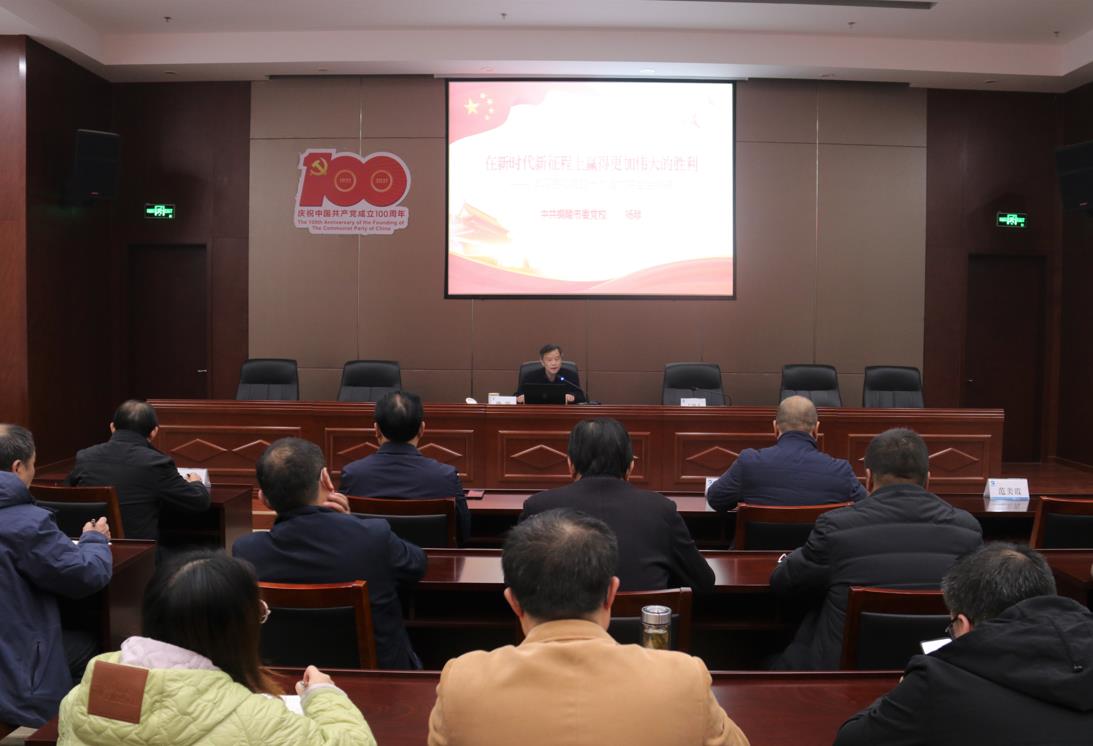 楊陟教授以“在新時(shí)代新征程上贏得更加偉大的勝利”為題,從總體把握黨的十九屆六中全會(huì)的主要內(nèi)容、全面認(rèn)識(shí)中國共產(chǎn)黨奮斗的偉大成就、充分領(lǐng)會(huì)中國共產(chǎn)黨百年奮斗的歷程、深刻理解中國共產(chǎn)黨百年奮斗的重大意義四個(gè)方面進(jìn)行了深入解讀。既有客觀理性的分析,又有具體生動(dòng)的說明,深入淺出,具有很強(qiáng)的針對(duì)性、指導(dǎo)性。