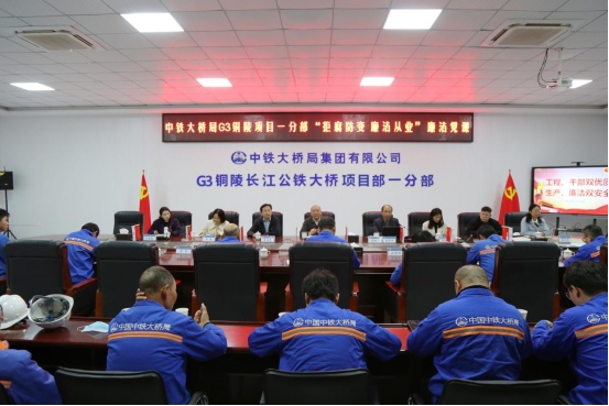 4月24日下午,集團公司邀請市委黨校鄭學年副教授赴G3公鐵橋作廉政輔導(dǎo)講座。集團公司黨委副書記方勁松,黨群部負責人、各支部書記及項目點黨支部全體黨員參加。