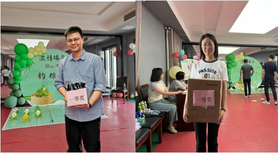 在游戲活動現(xiàn)場,充滿節(jié)日氣氛的裝飾映入眼簾,彩色的氣球、精美的展板,還有各式花樣的粽子、釣竿等道具,職工們紛紛揮動釣竿,試圖將掛有粽子的釣線準確地投入預(yù)設(shè)的“粽子池”中。一時間,現(xiàn)場歡聲笑語、熱鬧非凡。
