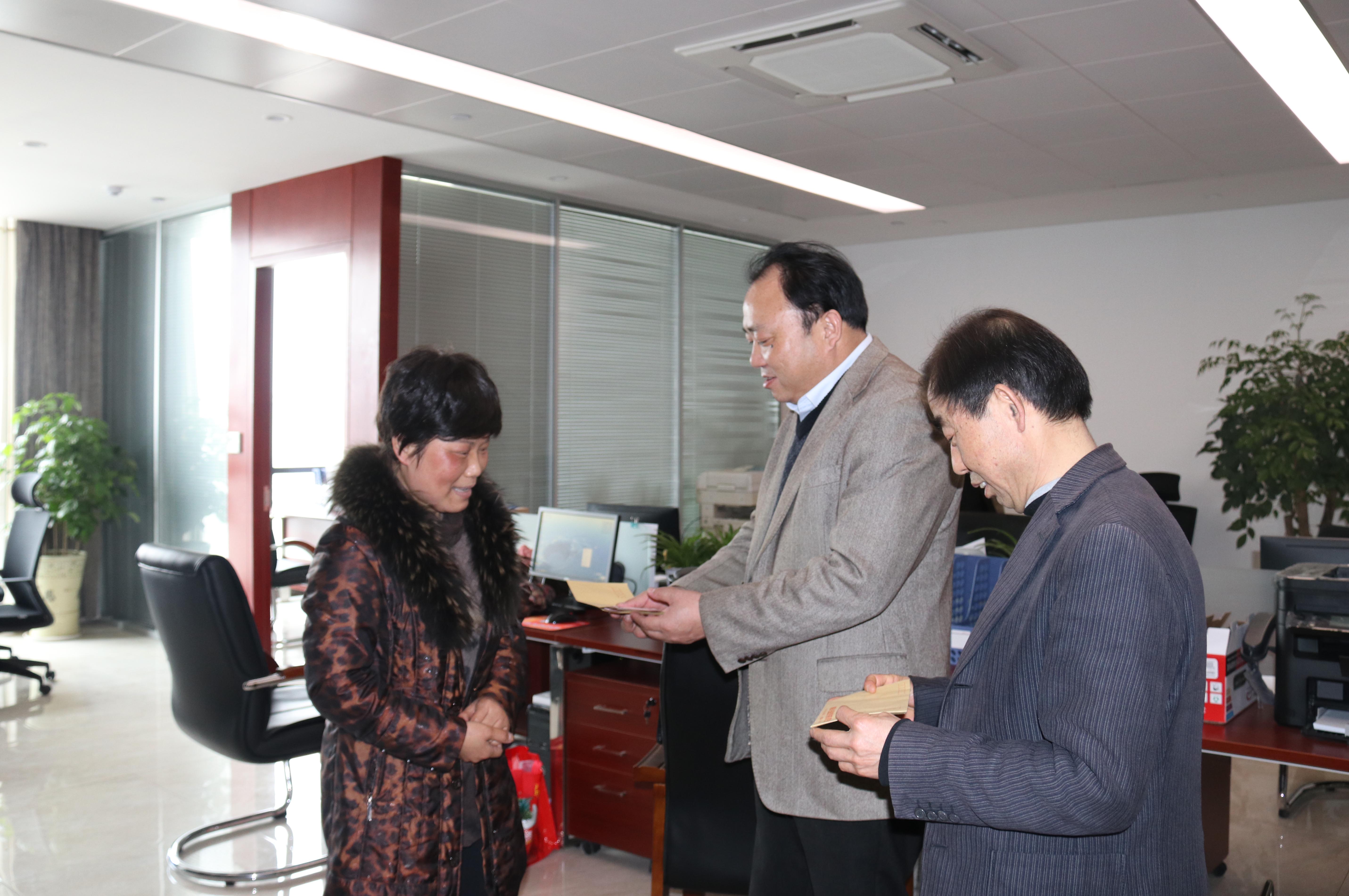 2月14日上午,公司黨工委書記、董事長何成龍,黨工委委員、紀(jì)委書記章新華看望慰問公司困難職工,將幫扶慰問資金送到困難職工手上,叮囑該職工安心治病,并致以春節(jié)的良好祝愿。