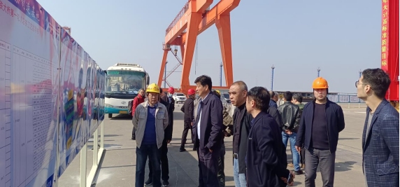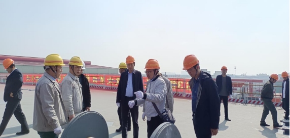 湯世才一行首先前往驗(yàn)收現(xiàn)場,詳細(xì)了解了鋼梁節(jié)段整體制造首節(jié)段總拼過程、結(jié)構(gòu)特點(diǎn)及重難點(diǎn)分析等內(nèi)容,并對質(zhì)量、安全、進(jìn)度提出了要求及建議。