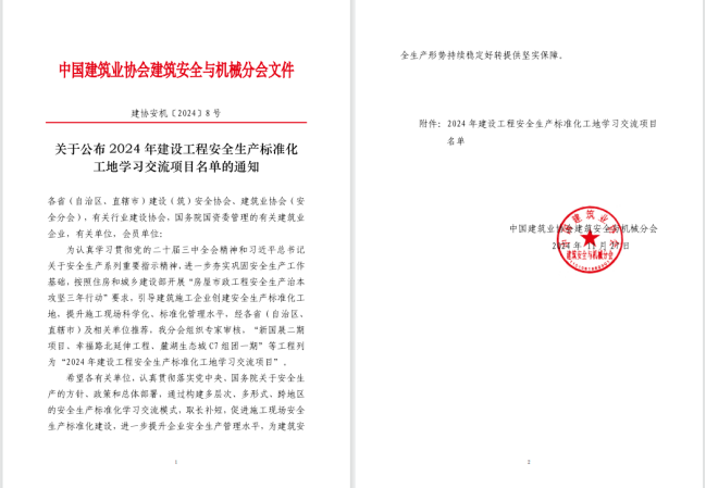 全國建設(shè)工程安全生產(chǎn)標(biāo)準(zhǔn)化工地學(xué)習(xí)交流項目,原稱“國家AAA級安全文明標(biāo)準(zhǔn)化工地”,是住建部批準(zhǔn)的全國范圍內(nèi)建筑安全文明施工領(lǐng)域的最高獎項,是“大城市”項目投標(biāo)加分的重要因素之一,對項目安全生產(chǎn)預(yù)防措施、職業(yè)健康安全管理體系的運行、現(xiàn)場安全生產(chǎn)標(biāo)準(zhǔn)化措施等綜合管理水平有著很高要求。作為長江經(jīng)濟帶和長三角一體化發(fā)展的關(guān)鍵節(jié)點工程,G3銅陵長江公鐵大橋憑借其高效施工、技術(shù)創(chuàng)新和安全生產(chǎn)標(biāo)準(zhǔn)化管理,被中國建筑業(yè)協(xié)會建筑安全與機械分會列入《2024年建設(shè)工程安全生產(chǎn)標(biāo)準(zhǔn)化工地學(xué)習(xí)交流項目名單》,成為全國基建領(lǐng)域的安全管理典范。